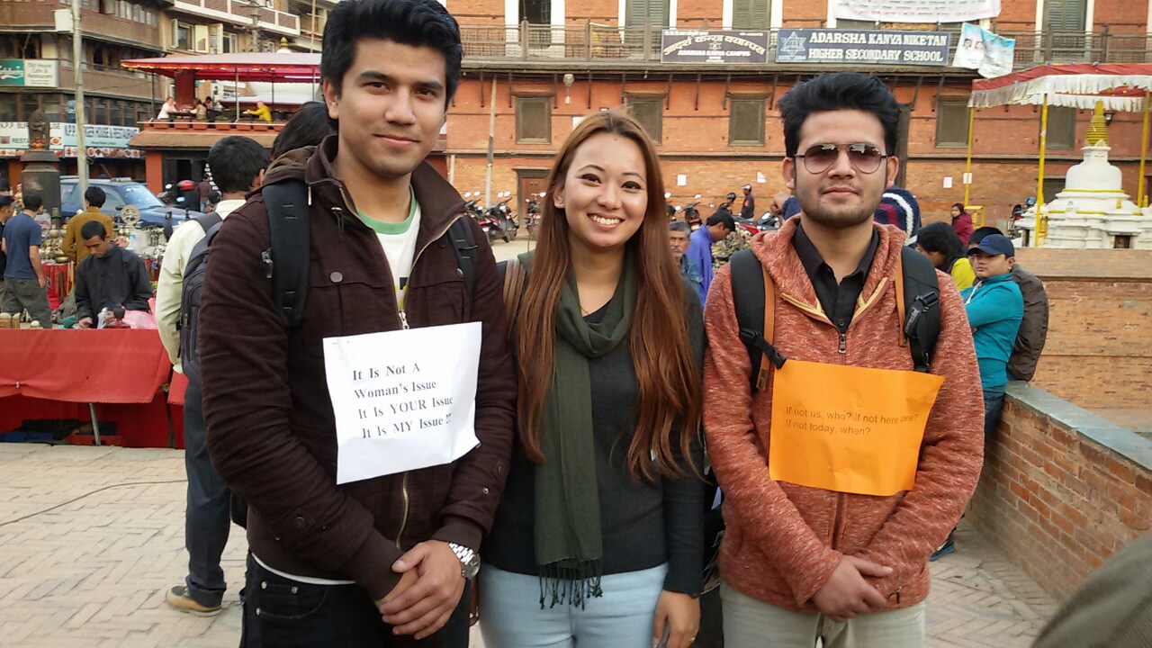 • Original President Leo Samrat Basyal (L), President Leo Sarina Shrestha (C) and Third Vice President Leo Dharma Raj Rimal (R) at the closing ceremony of Men's March 2016.